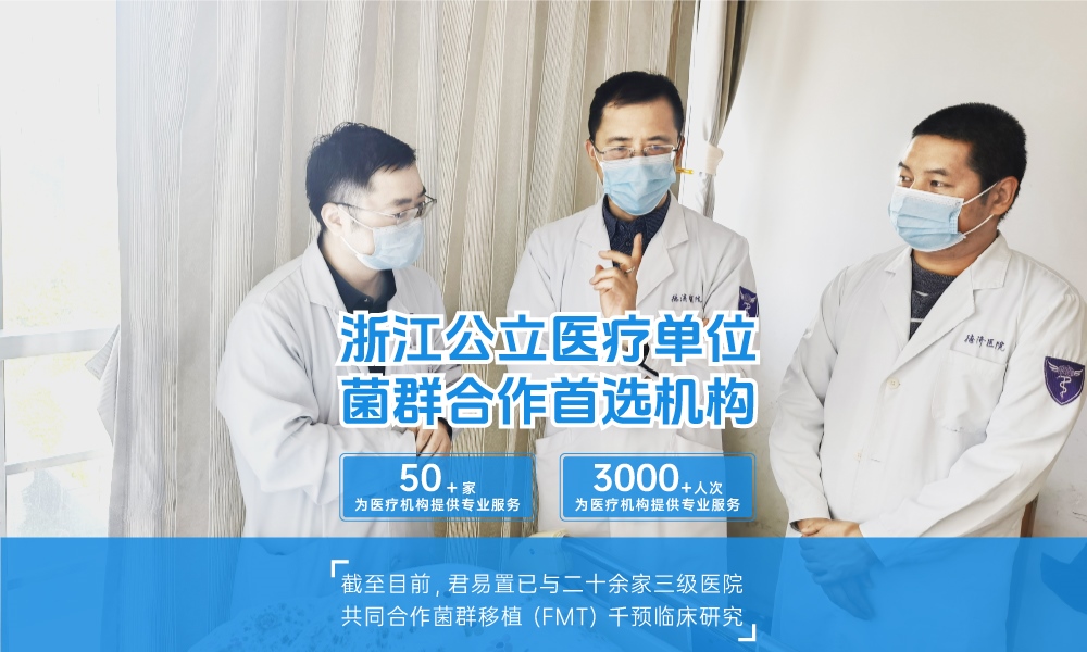 君易置是一家集醫學研究、試驗發展及技術服務于一體,專注于人體腸道微生態重建和腸道微生態個性化健康管理的高新技術企業。核心業務包括腸道菌群檢測、腸道全菌群提取、全菌群提取系統、腸道菌群移植、糞菌移植以及菌群導向性營養+運動健康方案,服務于浙江杭州、寧波、溫州、嘉興、紹興、臺州、金華、衢州、上海、廣州、南京、重慶、成都、武漢、南昌、蘇州、無錫、合肥、常州等地客戶。